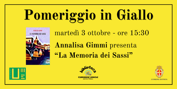 Mercoledì 3 Ottobre dalle ore 15.30, presso la Biblioteca Giordano Varesi, incontro con l’autrice Annalisa Gimmi, che presenterà il suo libro “La memoria dei Sassi”.
